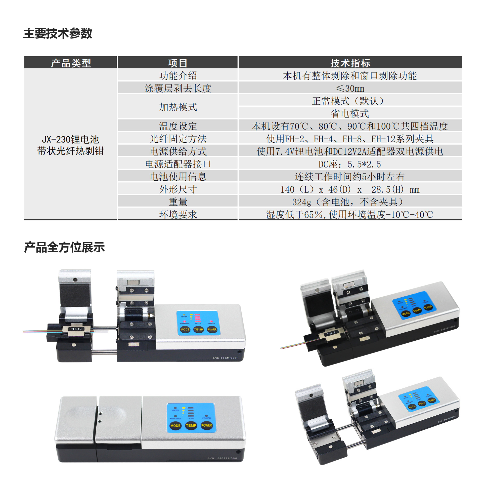 2.适用剥离2-12芯带状光纤,小巧轻便;